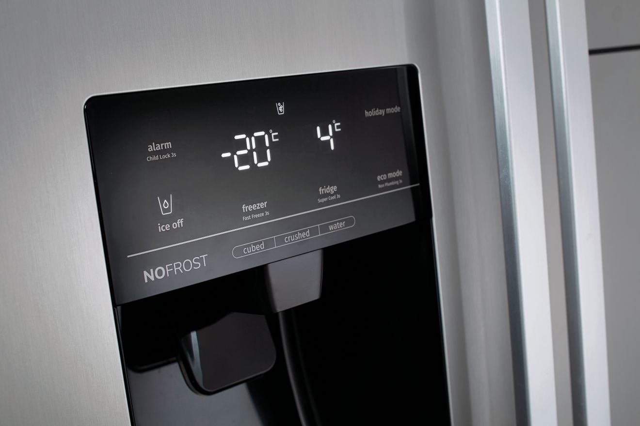 Jedan od najboljih sustava hlađenja na tržištu, ugrađen u zamrzivački dio, sprječava nakupljanje leda i inja. Kao rezultat, nećete morati odleđivati zamrzivač i njegov prostor za pohranjivanje bit će učinkovitije iskorišten. Paketi ili komadi zamrznute hrane se neće lijepiti jedna za drugu, što će pomoći pri održavanju vašeg zamrzivača čistim i urednim. Ledomat s dispenzerom za vodu Ledomat s dispenzerom za vodu kojim se upravlja na dodir i koji je povezan na dovod vode omogućava uživanje u hladnoj vodi, drobljenom ledu ili kockama leda. Zahvaljujući svom uskom dizajnu, ne zauzima previše prostora u unutrašnjosti hladnjaka.