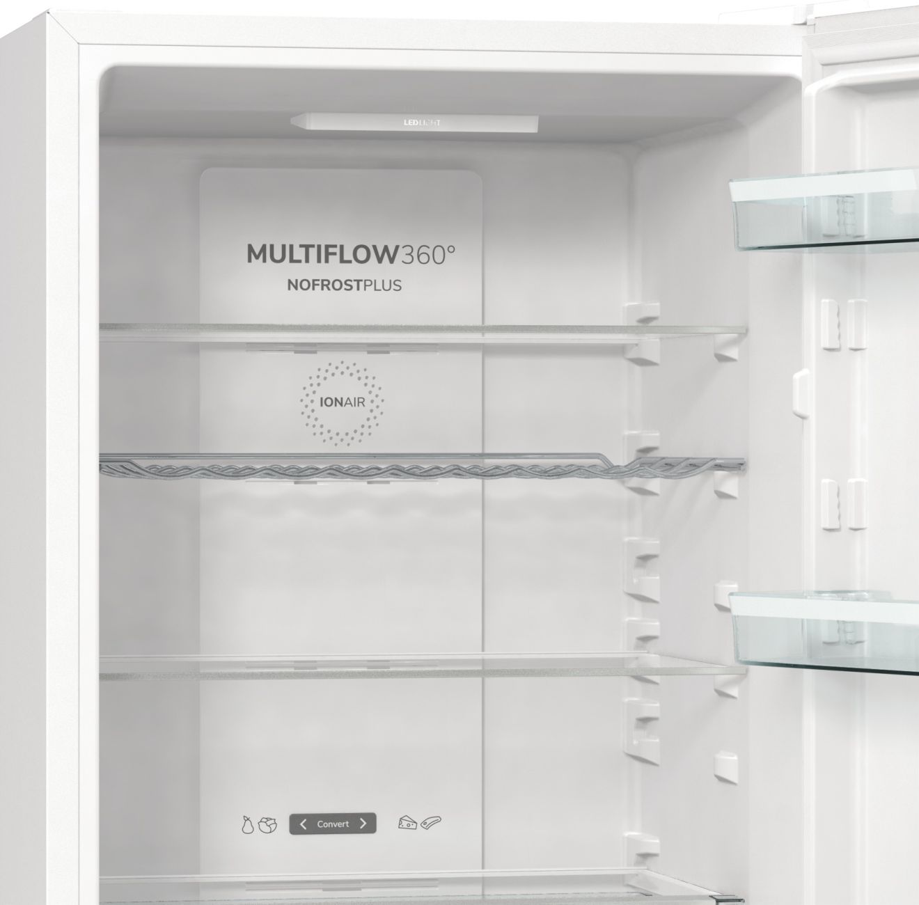 Convert FreshZone Ova ladica jednostavno se pretvara iz ladice za ribu i mesu u ladicu za voće i povrće, lako možete pohraniti svoje svježe namirnice na odgovarajući način. IonAir s MultiFlow 360° Napredna tehnologija u Gorenje hladnjacima oponaša prirodni proces ionizacije kako bi osigurala dužu svježinu namirnica. Negativno nabijeni ioni genereirani u hladnjaku kontinuirano osvježavaju zrak imitirajući prirodnu mikroklimu te time stvaraju idealan okoliš za svježu hranu. Ventilacijski sustav MultiFlow 360° ravnomjerno distribuira ionizirani zrak kroz 14 ventilacijskih otvora i održava ravnomjernu temperaturu na svakoj polici hladnjaka. AdaptTech (GardenFresh FS 2020) Ovaj pametni sustav razvijen je kako bi održao optimalnu temperaturu hladnjaka u odnosu na to koliko često otvarate vrata. Kada se vrata otvore, temperatura se trenutno podiže i hrana je izložena termalnom šoku koji dovodi do bržeg propadanja namirnica. Hladnjak konstantno prati i analizira način na koji ga koristite. Na osnovu toga on može predvidjeti kada ćete otvoriti vrata i prije tog trenutka, on će smanjiti temperaturu za 1 ili 2 °C kako bi se pobrinuo da se konstantna temperatura održi i da hrana ostane svježa i puna hranjivih sastojaka. CrispZone s HumidityControl CrispZone je jedna od najvećih ladica za voće i povrće na tržištu. Niska temperatura i mogućnost regulacije vlage osiguravaju dužu svježinu voća i povrća. SlotIn Zahvaljujući funkcionalnosti SlotIn, vrata hladnjaka otvaraju se pod pravim kutom te se sve police i ladice mogu u potpunosti izvući. Ovo rješenje idealno je za one koji hladnjak žele smjestiti u kut uz zid ili u kuhinjsku nišu, između dva aparata ili elementa. LedLight LED svjetlo u hladnjaku omogućava odlično osvjetljenje i dobru preglednost sadržaja hladnjaka. LED osvjetljenje je do 30 puta trajnije od standardnog osvjetljenja i do 10 puta energetski učinkovitije. Držač za boce S praktičnim držačem boca vaše boce i konzerve su jednostavno dostupne i ne zauzimaju prostor tamo gdje možete inače smjestiti druge namirnice. FastFreeze FastFreeze funkcija omogućava zamrzavanje hrane na temperaturi od -24°C kako bi se sačuvalo što više hranjivih tvari u namirnicama. Nakon 48 sati funkcija se automatski isključuje, a prostor zamrzivača vraća se na ranije namještenu temperaturu. EcoMode U slučaju duljeg izbivanja ili godišnjeg odmora, hladnjak je moguće podesiti za rad u EcoMode sustavu, odnosno u sustavu s ekonomičnom potrošnjom električne energije, budući da su vrata hladnjaka stalno zatvorena. Jednostavno čišćenje Zahvaljujući inovativnom dizajnu i sjajnoj glatkoj unutrašnjosti, Gorenje GardenFresh kombinirani hladnjaci izuzetno su jednostavni za čišćenje, čime se osiguralo da namirnice ostanu zdrave i sigurne. SensoTech Switch Velik i pregledan LED zaslon omogućava brzo i lako upravljanje i namještanje temperature. Funkcije poput FastFreeze i HolidayMode mogu se uključiti jednostavnim dodirom. U slučaju iznenadnog povećanja temperature u hladnjaku, ugrađeni alarm odmah će vas upozoriti. E (energetska učinkovitost) Uređaji stari 15 ili više godina troše i do tri puta više energije od uređaja nove generacije. Gorenje novi modeli dolaze s izvrsnom toplinskom izolacijom, uređaji se mogu pohvaliti poboljšanim brtvljenjem vrata, najsuvremenijim komponentama rashladnog sustava i elektronskom regulacijom koja smanjuje korištenje energije na minimum.