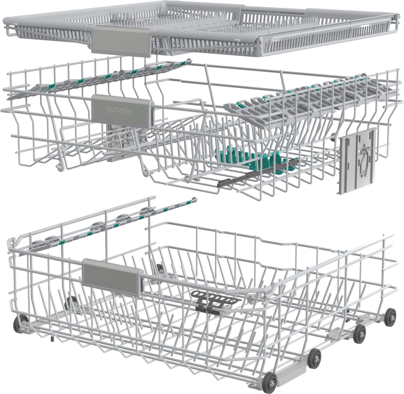 Košare su opremljene označenim pomičnim elementima i prilagodljivim dizajnom košara za jednostavno punjenje. Uistinu jednostavan sustav podešavanja košare na dvije razine omogućuje vam postavljanje čak i najvećih lonaca i tanjura. Stalak za tanjure u donjoj košari može se lako sklopiti. Pribor za jelo može se savršeno organizirati u posebnoj košari, gdje se postavlja odvojeno za savršene rezultate čišćenja i sušenja. Svaki detalj je pažljivo osmišljen za što lakše rukovanje.