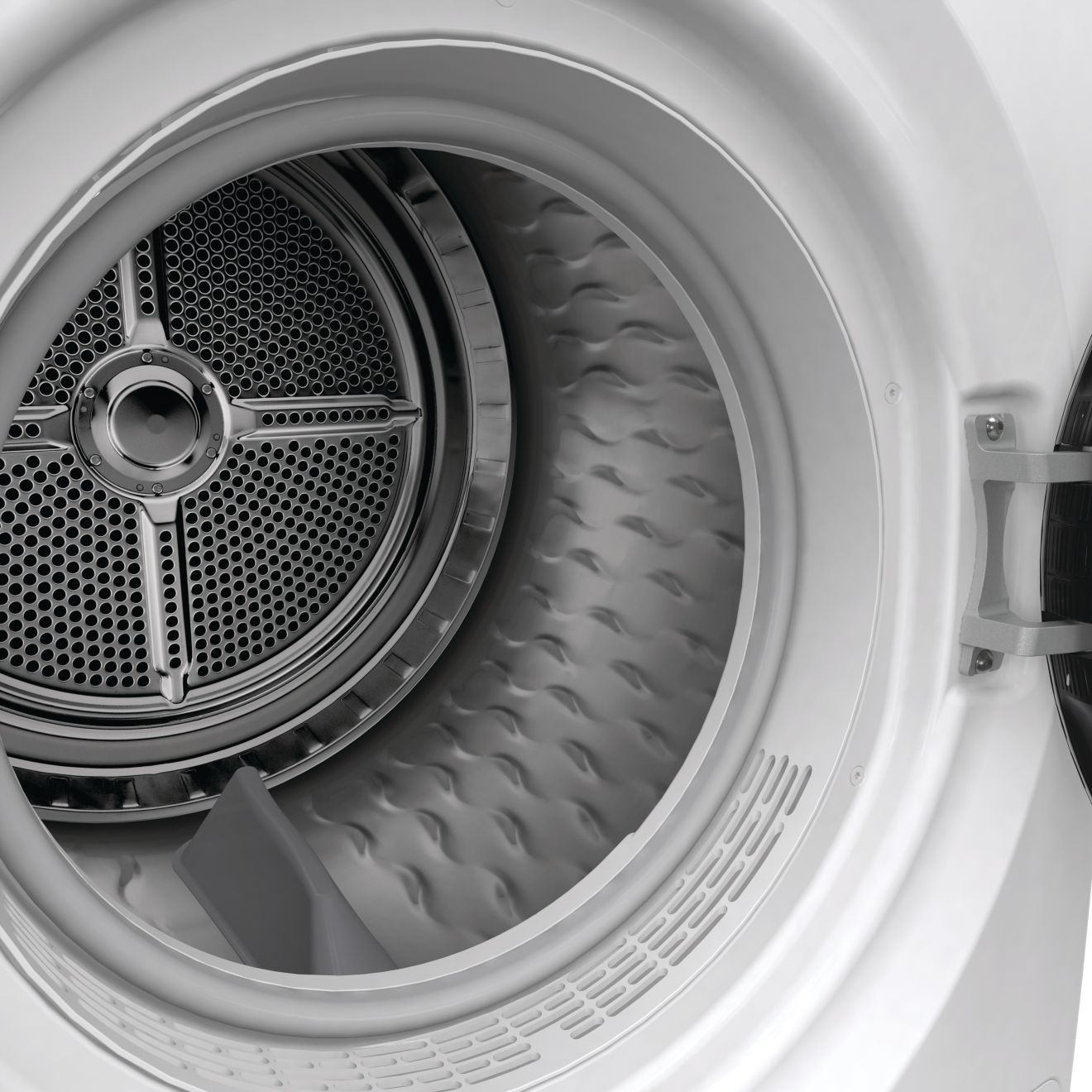 Značajka AntiCrease je dizajnirana kako bi se smanjilo gužvanje rublja. Okretanje i poseban 3D dizajn rebra sprječavaju zapetljavanje ili skupljanje rublja, što rezultira poboljšanom učinkovitošću sušenja. Period od 10 minuta na kraju ciklusa sušenja polako hladi rublje kako bi se dodatno smanjila mogućnost gužvanja. Čak i kada se sušilica ne može odmah isprazniti, vaša se odjeća neće slegnuti ili zgužvati zahvaljujući automatskom, povremenom prevrtanju rublja najmanje jedan sat nakon završetka ciklusa.