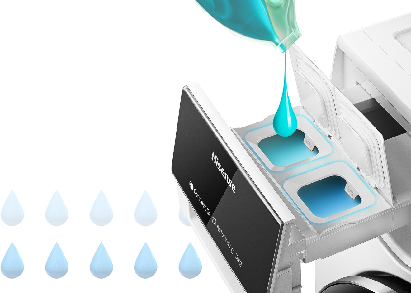 Automatski uskladite savršeni ciklus pranja za vaše rublje vaganjem i senzorom punjenja. Nema više nagađanja, Smart Dosing① pomaže u potpunom iskorištenju deterdženta i štedi svaku kap kako bi se smanjile otpadne vode, štiteći okoliš.