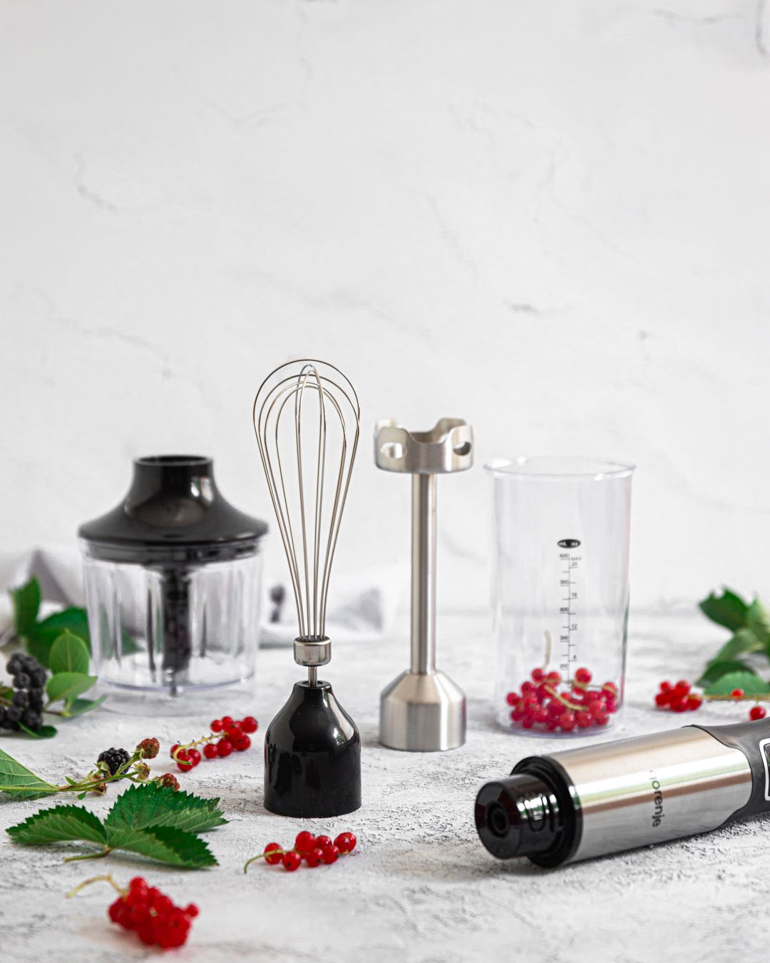 Ovaj model dolazi s bogatom kolekcijom nastavaka. Koristite nogu za sjeckanje od nehrđajućeg čelika kako biste pripremili savršeni pire, umak, smoothie ili juhu. Potreban je samo jedan pokret kako biste pričvrstili metlicu za tučenje kada želite umutiti jaja ili šlag. Sjeckalica s posudom od 500 ml učinkovito će nasjeckati čvršće namirnice u malene komade.