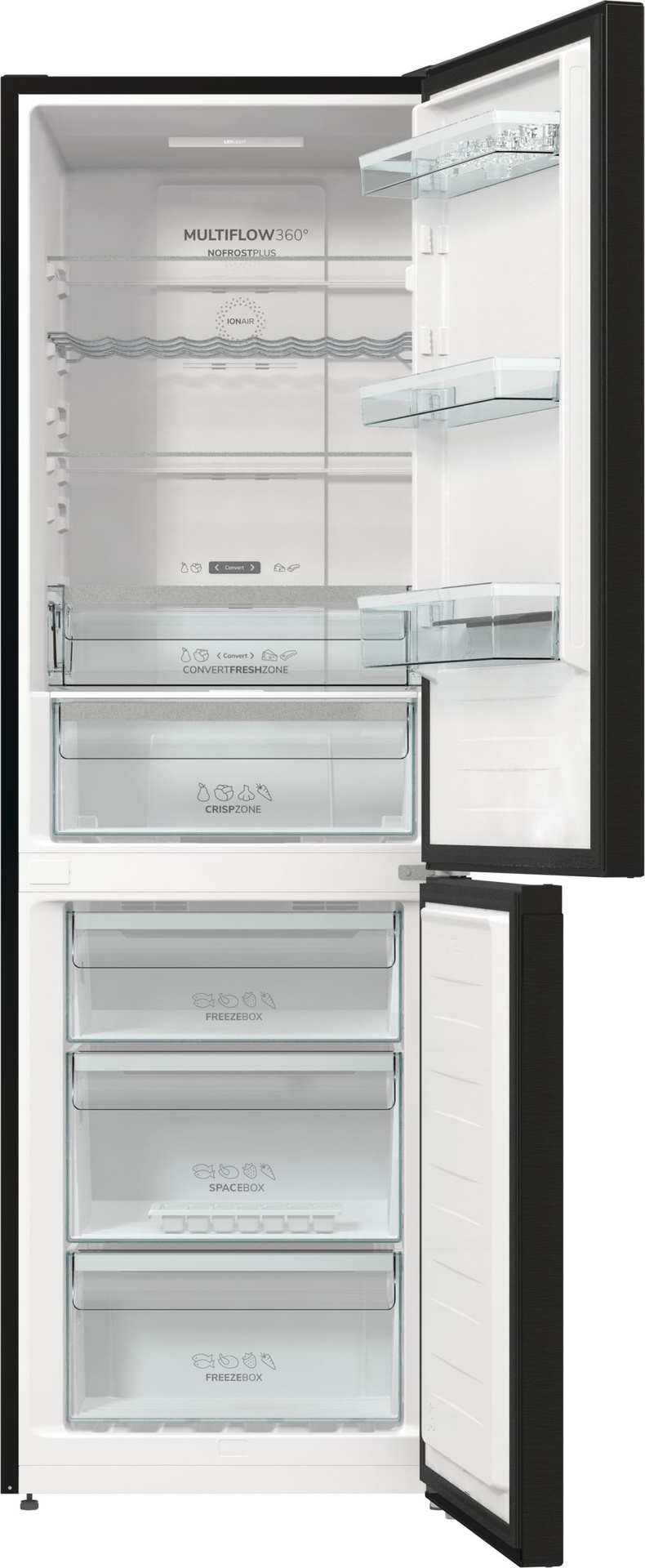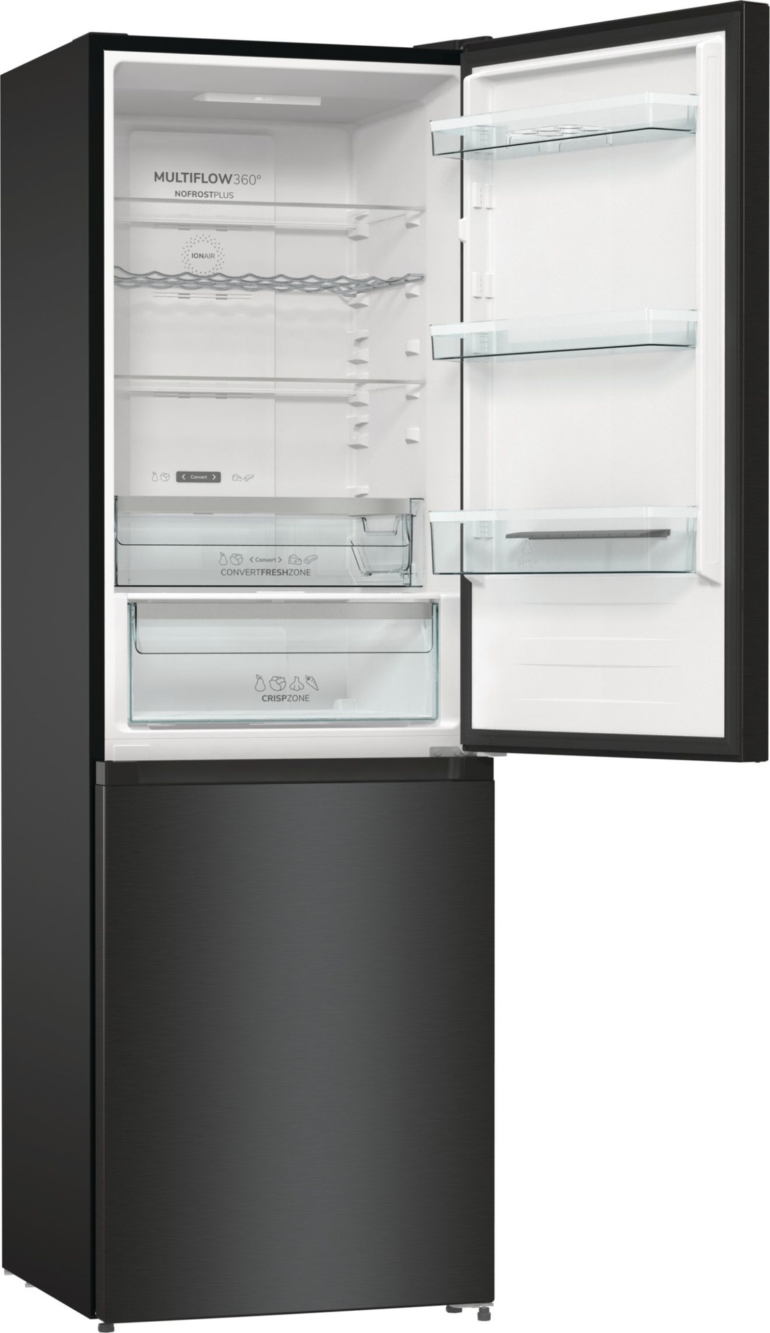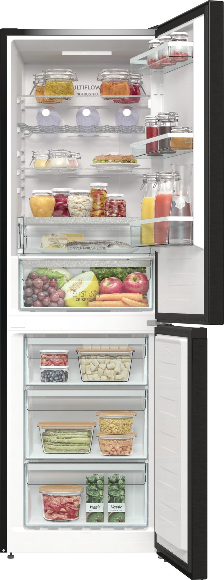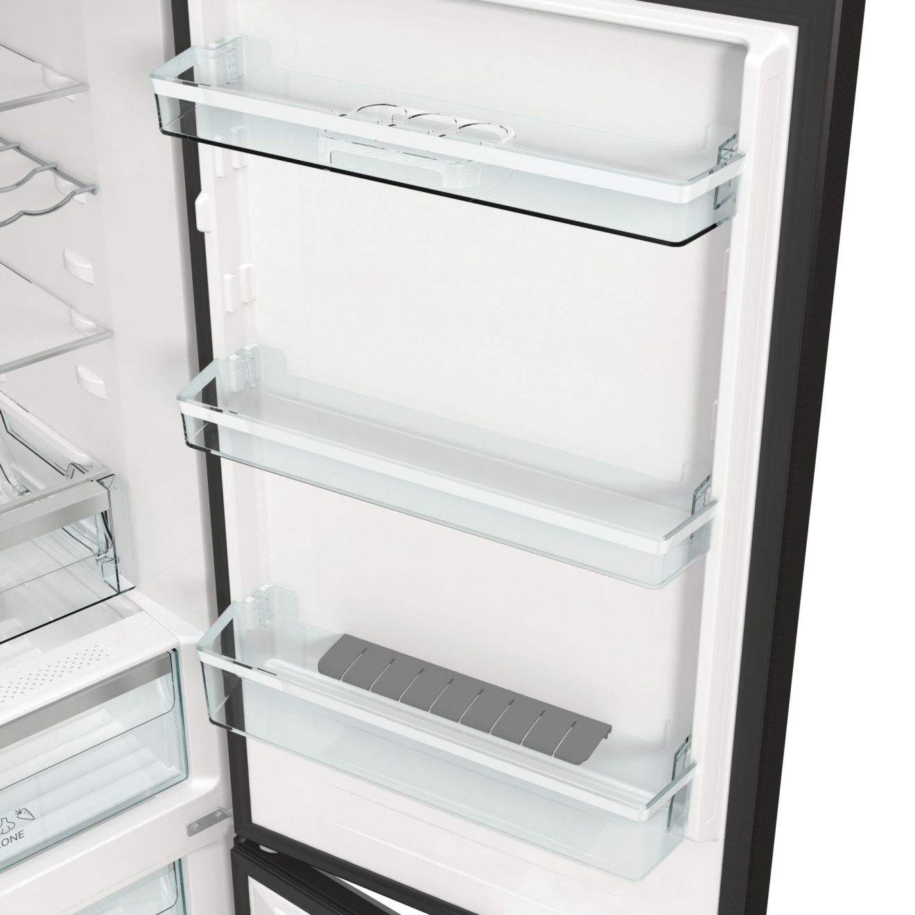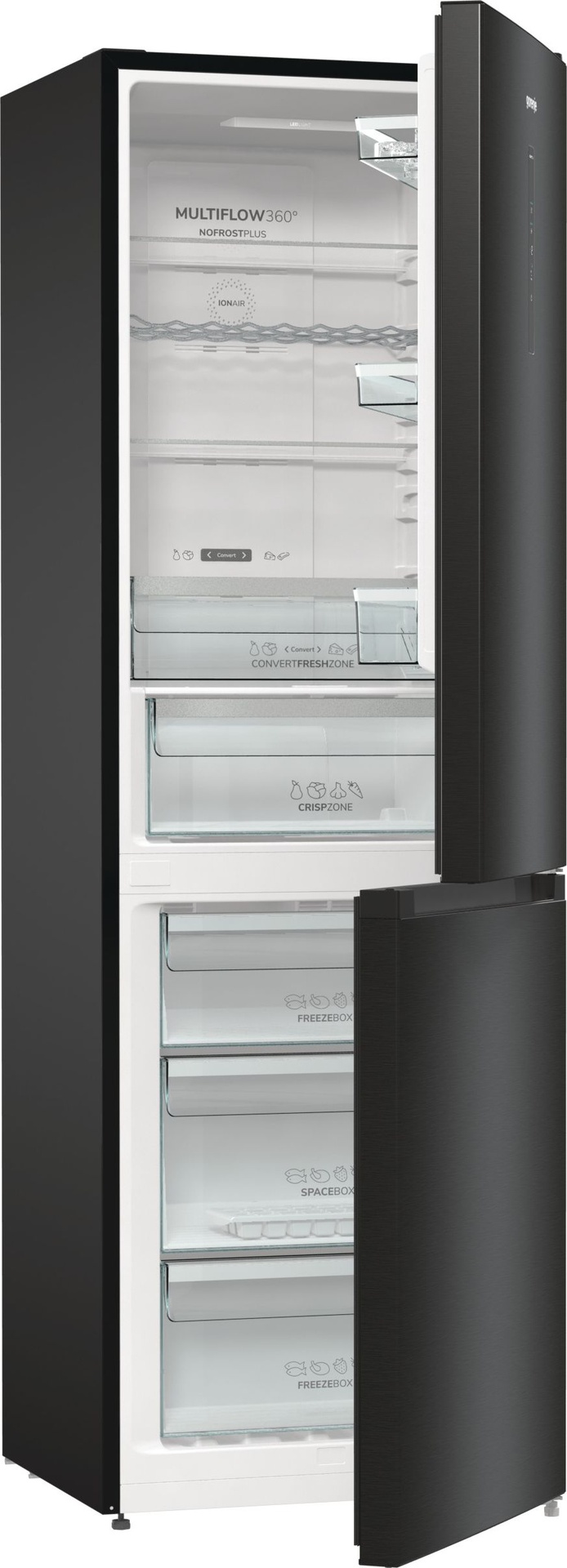 Convert FreshZone Ova ladica jednostavno se pretvara iz ladice za ribu i mesu u ladicu za voće i povrće, lako možete pohraniti svoje svježe namirnice na odgovarajući način. IonAir s MultiFlow 360° Napredna tehnologija u Gorenje hladnjacima oponaša prirodni proces ionizacije kako bi osigurala dužu svježinu namirnica. Negativno nabijeni ioni genereirani u hladnjaku kontinuirano osvježavaju zrak imitirajući prirodnu mikroklimu te time stvaraju idealan okoliš za svježu hranu. Ventilacijski sustav MultiFlow 360° ravnomjerno distribuira ionizirani zrak kroz 14 ventilacijskih otvora i održava ravnomjernu temperaturu na svakoj polici hladnjaka. AdaptTech (GardenFresh FS 2020) Ovaj pametni sustav razvijen je kako bi održao optimalnu temperaturu hladnjaka u odnosu na to koliko često otvarate vrata. Kada se vrata otvore, temperatura se trenutno podiže i hrana je izložena termalnom šoku koji dovodi do bržeg propadanja namirnica. Hladnjak konstantno prati i analizira način na koji ga koristite. Na osnovu toga on može predvidjeti kada ćete otvoriti vrata i prije tog trenutka, on će smanjiti temperaturu za 1 ili 2 °C kako bi se pobrinuo da se konstantna temperatura održi i da hrana ostane svježa i puna hranjivih sastojaka. CrispZone s HumidityControl CrispZone je jedna od najvećih ladica za voće i povrće na tržištu. Niska temperatura i mogućnost regulacije vlage osiguravaju dužu svježinu voća i povrća. SlotIn Zahvaljujući funkcionalnosti SlotIn, vrata hladnjaka otvaraju se pod pravim kutom te se sve police i ladice mogu u potpunosti izvući. Ovo rješenje idealno je za one koji hladnjak žele smjestiti u kut uz zid ili u kuhinjsku nišu, između dva aparata ili elementa. LedLight LED svjetlo u hladnjaku omogućava odlično osvjetljenje i dobru preglednost sadržaja hladnjaka. LED osvjetljenje je do 30 puta trajnije od standardnog osvjetljenja i do 10 puta energetski učinkovitije. Držač za boce S praktičnim držačem boca vaše boce i konzerve su jednostavno dostupne i ne zauzimaju prostor tamo gdje možete inače smjestiti druge namirnice. FastFreeze FastFreeze funkcija omogućava zamrzavanje hrane na temperaturi od -24°C kako bi se sačuvalo što više hranjivih tvari u namirnicama. Nakon 48 sati funkcija se automatski isključuje, a prostor zamrzivača vraća se na ranije namještenu temperaturu. EcoMode U slučaju duljeg izbivanja ili godišnjeg odmora, hladnjak je moguće podesiti za rad u EcoMode sustavu, odnosno u sustavu s ekonomičnom potrošnjom električne energije, budući da su vrata hladnjaka stalno zatvorena. Jednostavno čišćenje Zahvaljujući inovativnom dizajnu i sjajnoj glatkoj unutrašnjosti, Gorenje GardenFresh kombinirani hladnjaci izuzetno su jednostavni za čišćenje, čime se osiguralo da namirnice ostanu zdrave i sigurne. SensoTech Switch Velik i pregledan LED zaslon omogućava brzo i lako upravljanje i namještanje temperature. Funkcije poput FastFreeze i HolidayMode mogu se uključiti jednostavnim dodirom. U slučaju iznenadnog povećanja temperature u hladnjaku, ugrađeni alarm odmah će vas upozoriti. E (energetska učinkovitost) Uređaji stari 15 ili više godina troše i do tri puta više energije od uređaja nove generacije. Gorenje novi modeli dolaze s izvrsnom toplinskom izolacijom, uređaji se mogu pohvaliti poboljšanim brtvljenjem vrata, najsuvremenijim komponentama rashladnog sustava i elektronskom regulacijom koja smanjuje korištenje energije na minimum.