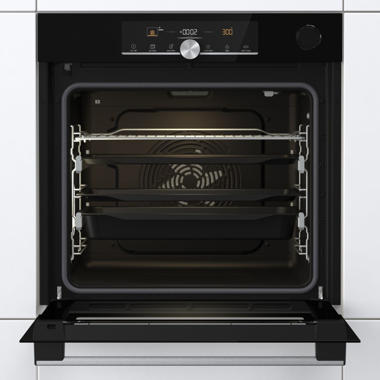 Jeste li znali da otvaranje vrata tijekom procesa pečenja uzrokuje pad temperature u pećnici i čak može uništiti jelo? Zbog maksimalizirane veličine prozora na vratima pećnice, izvrsnog halogenog osvjetljenja i unaprijeđenog pozicioniranja razina pečenja, nove OptiBake pećnice nude cjelovit pregled nad procesom pečenja u svakom trenutku bez otvaranja vrata.