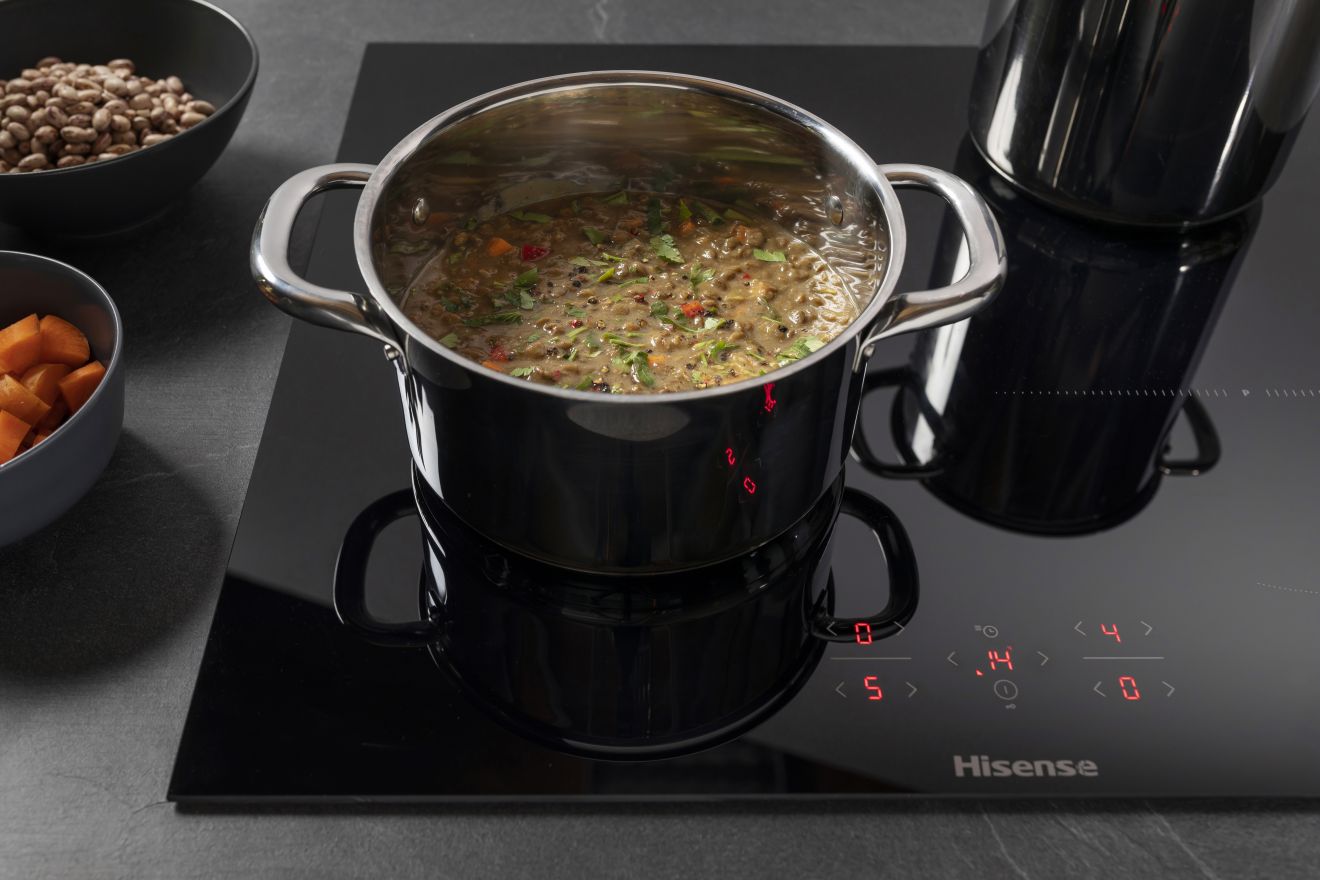 Poboljšajte svoju igru kuhanja s najnovijim dizajnom sučelja. S ovom vrhunskom funkcijom sada možete imati potpunu kontrolu nad svakom zonom za kuhanje, što vam omogućuje da s lakoćom obavljate više zadataka dok kuhate, u isto vrijeme. Intuitivne i responzivne kontrole na dodir olakšavaju precizno podešavanje razina snage i postavki za svaku zonu, pružajući vam neusporedivu preciznost i majstorstvo kuhanja. Podignite svoje kulinarske vještine na višu razinu i doživite neusporedivu kontrolu kuhanja s novim korisničkim sučeljem osjetljivim na dodir za sve četiri zone na Hisense pločama za kuhanje.